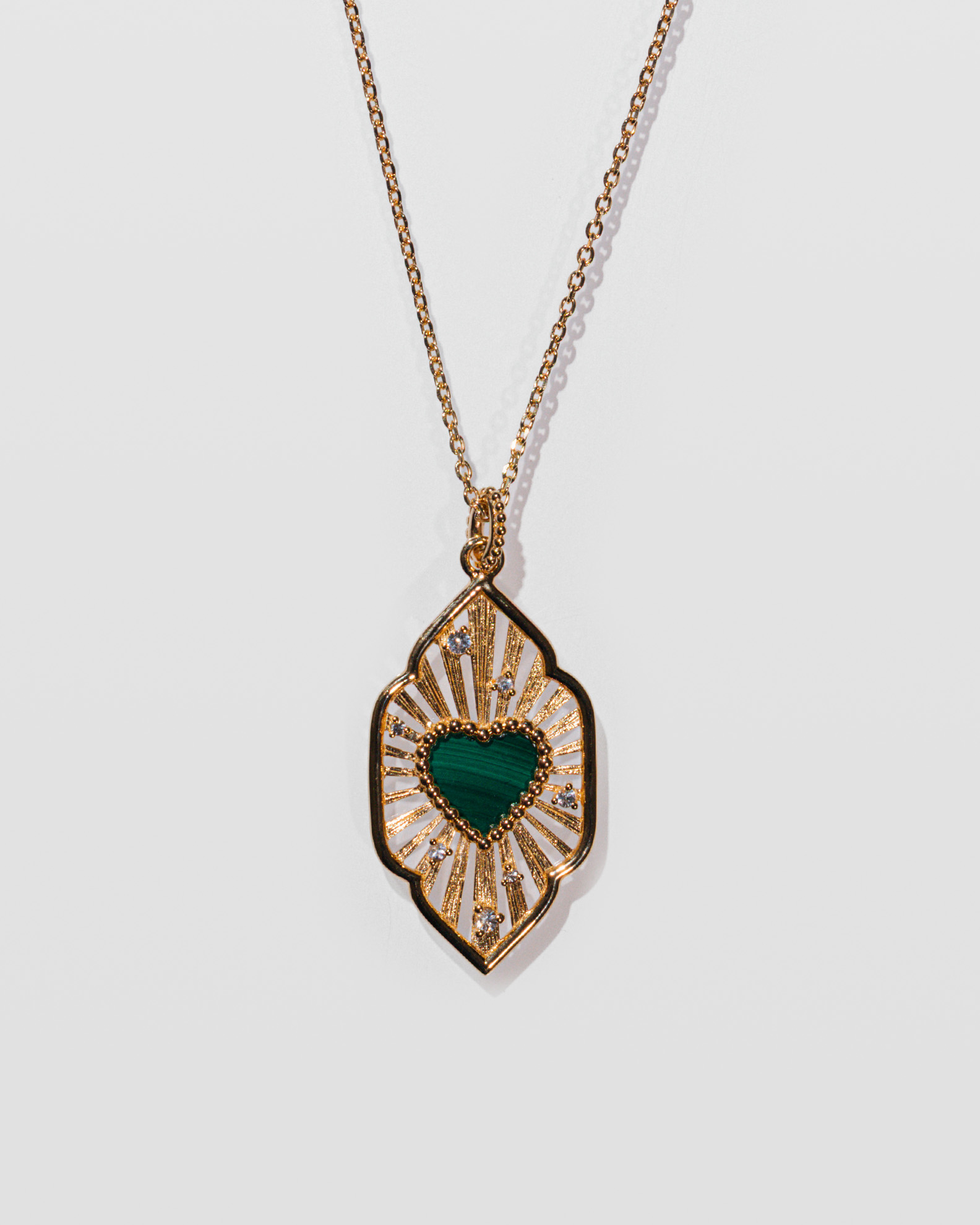 Large Agapé heart pendant in guilloché vermeil set with white sapphires. Comes with an adjustable vermeil chain.